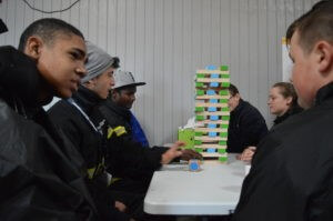 ”Rigtig god tur til jer alle,” råber en af instruktørerne til kadetterne og de frivillige, der har taget plads på græsplænen foran teltlejren. Alle inddelt i hold på syv personer, der ikke kender hinanden på forhånd. Lidt forsigtigt bevæger holdene sig ud på en af sommertræffets første aktiviteter, hvor deltagerne skal gennemføre et såkaldt o-løb. Undervejs møder holdet 15 forskellige poster, hvor instruktørerne står klar med en række spørgsmål. Jo flere, holdet kan svare rigtigt på, jo flere point får det. ”Jeg skal nok oversætte for jer, der ikke kan dansk,” siger Freya, der er brandkadet i Vestsjællands Brandvæsen, da hendes hold er på vej hen til første post. De internationale holddeltagere smiler og nikker anerkendende. Holdet klarer de første poster med bravour og scorer maksimumpoint. Men ved fjerde post volder spørgsmålet problemer. Her skal holdet svare på, hvad de forskellige bårer i beredskabet hedder. ”Jeg ved, at der er noget, der hedder en skålbåre,” siger Jens, der er brandkadet hos Hovedstadens Beredskab. ”Det er rigtigt,” siger instruktøren og giver et par hints, der hjælper holdet til at gætte navnene på de tre andre varianter. Holdet bevæger sig mod næste post. På vejen øver Freya talrækken med Paul. Han kan nu tælle til tyve på dansk. ”Jeg skal altså også lære dig at tælle til tyve på fransk,” siger Paul og begynder at remse de første tal op. Freya griner og ryster på hovedet. ”Det tror jeg aldrig, jeg lærer,” siger hun.